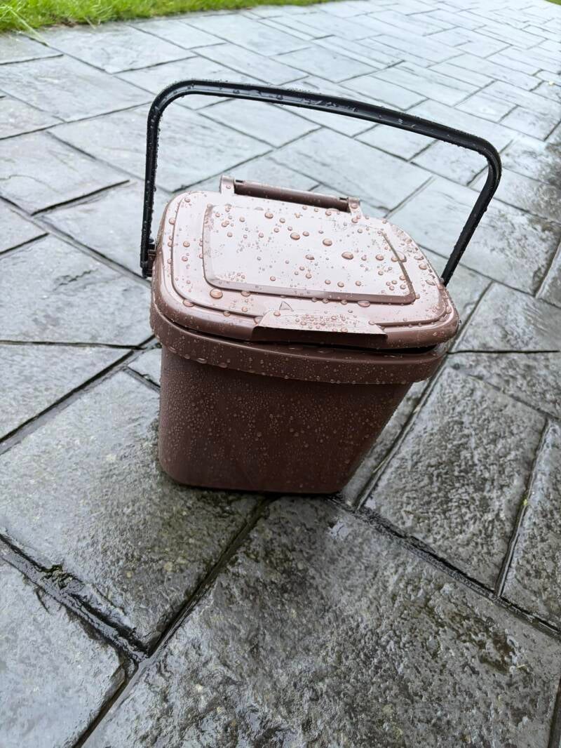 Brown waste food caddie with lovely handle.