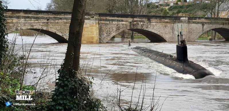 Rumour has it, the UK defence secretary tells Putin "you're shit at hiding" as Russian sub spotted in the River Wharfe at Boston Spa again