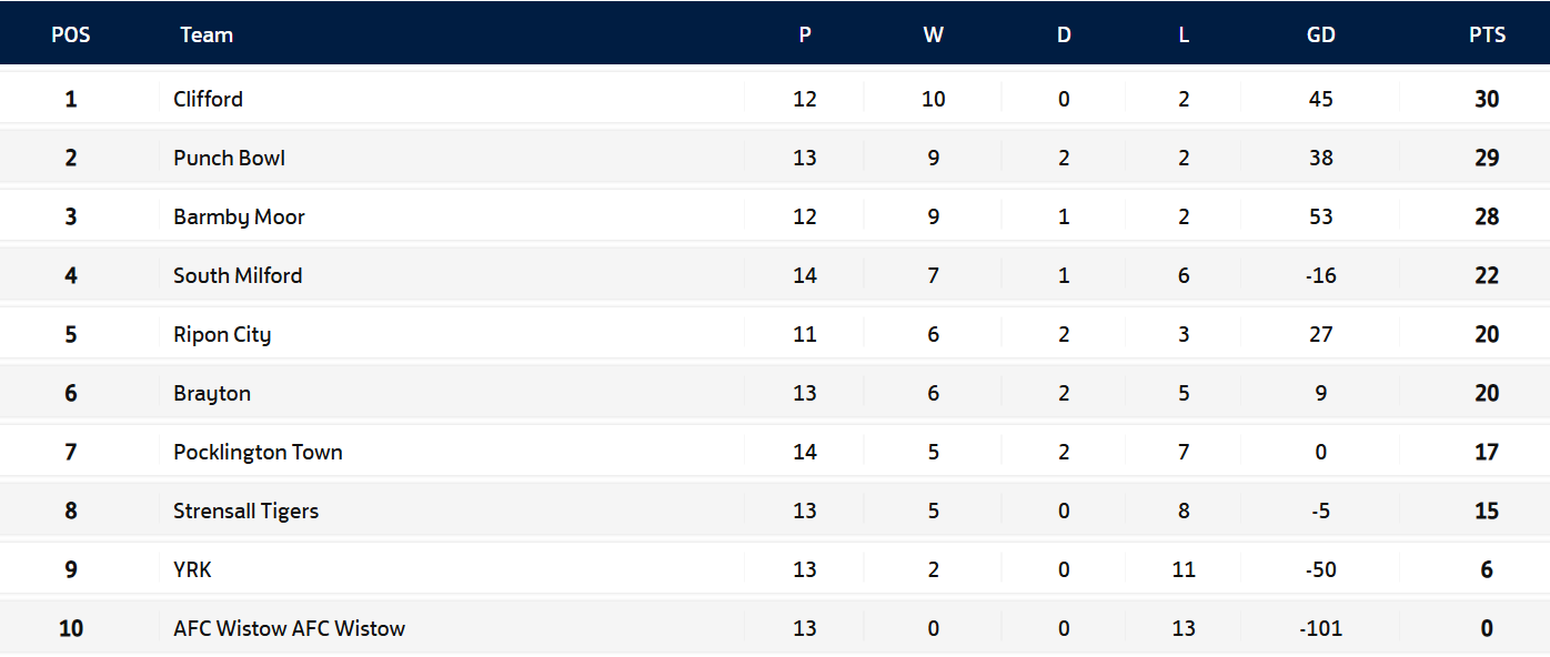 | 5/10 | Pocklington | Clifford | 5-2 | Pocklington Town FC | League |
